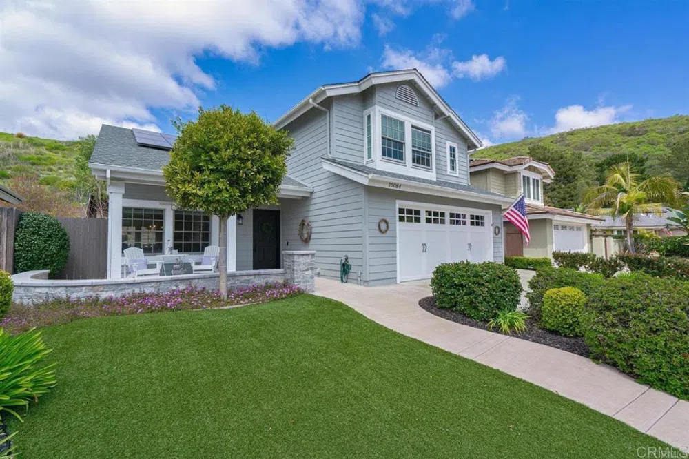 Welcome to this gorgeous updated Rancho Penasquitos home, ideally located on a large lot, providing the peace and privacy you have always desired. As you walk up to this meticulously maintained home, you are greeting with a charming front porch that welcomes you inside. This 4 bedroom 2.5 bath home features new upgraded flooring, crown molding, vaulted ceilings, a spacious primary suite with a walk-in closet, and a remodeled kitchen with quartz countertops that opens up to a family room with a cozy fireplace. You can feel the love in every intentional detail of this thoughtfully designed home for maximum enjoyment. The backyard oasis is ideal for entertaining, with the large patio, outdoor BBQ area, pathways, and room to play and explore. The beautiful landscaping is a perfect complement to the low-maintenance artificial pet-friendly turf. This beautiful home is located in Rancho Penasquitos, commonly abbreviated “PQ.” Rancho Penasquitos is a community located in the northeastern part of San Diego. Residents enjoy both a suburban and a country feel, while having close access to freeways, restaurants, shopping, and beaches. The community is surrounded by numerous canyons and hills, adding to its natural beauty. Rancho Penaquitos is also located in the award-winning Poway Unified School District, making it a great place to call home. Dreams come true at 10084 Branford Road.