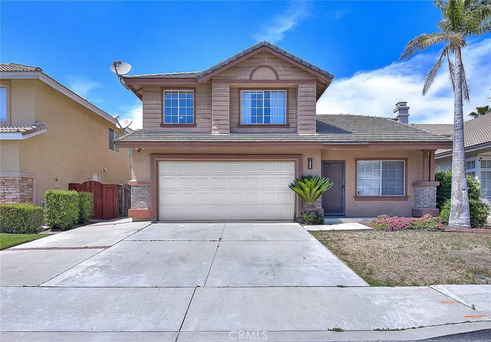Lovely Pool Home in The Village of Heritage Community in Fontana! Formal Living Room and Dining Room with High Ceilings. Recently Updated Kitchen with a Center Island, Newer Cabinets with Decorative Glass Accents, Quartz Countertops, a Farmhouse Sink and Stainless-Steel Appliances Including a Gas Range, Microwave, Dishwasher and Refrigerator. Family Room with a Wood Burning Fireplace. Four Bedrooms Including a Main Floor Bedroom and Three Bedrooms Upstairs. Three Bathrooms with a Newly Updated Bathroom Downstairs that Features a Vanity and a Shower. The Primary Bedroom Upstairs Features a Walk-In Closet, High Ceilings and an Attached Bathroom with Dual Sinks, an Oval Tub and a Separate Shower. The Hall Bathroom Upstairs Also has a Newer Vanity and a Tub/Shower. New Carpeting installed on Stairs and the Entire Upstairs in All Bedrooms and Hallway. Indoor Laundry Area Downstairs and Vinyl Flooring throughout the Main Floor. Two Car Attached Garage with a Roll Up Aluminum Door and Opener. The Rear Yard is Perfect for Entertaining with a Lattice Covered Patio and a Gorgeous Built in Pool with Stone Accents. Side Yard Area with a Kids Play Gym. The Lot is 4541 Square Feet and is Located on a Cul-De-Sac Street. Centrally Located and in Close proximity to Freeways, Shopping, the Acclaimed Etiwanda School District!