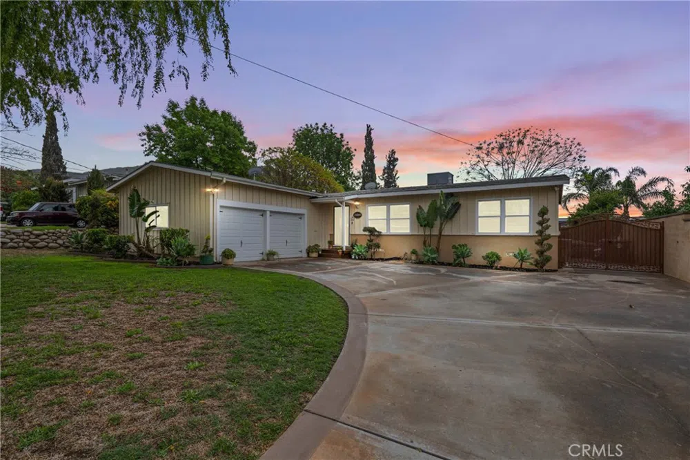 Welcome home to the great City of Grand Terrace! Grand Terrace is known for offering a superb quality of life with a relaxed small-town feel, along with quiet neighborhoods, clean streets, high achieving public school and a safe community environment. This awesome 1,052 appx square foot home features 3 bedrooms, 2 beautifully remodeled bathrooms, with central air and heating, a two car attached garage and RV access and parking. The primary wing of this home features a private ensuite with a 3/4 beautifully remodeled bathroom, large closet with storage above, linen closet and its own private entrance. The updated kitchen has an eating area, with a window view to the grand back yard. The cozy living room has been updated with recessed lighting, all with double pane windows, blinds and ceiling fans throughout. This garage offers two newer garage doors which open independently of each other. The laundry hookups, along with a sink vanity are located inside the garage. This garage also offers an area that was built out as office space. This home sits on a large 11,850 square foot beautifully landscaped lot. The front exterior of the home features a large driveway, capable of parking several cars. Large front yard with a beautiful signature mature tree that provides an enormous amount of shade. The completely fenced in large back yard is landscaped complete with a covered lighted patio area great for entertaining. There are also several fruit trees strategically planted in this back yard. This home has an enclosed side yard for pets, storage or parking another vehicle. The RV access to this property is located off Barton Rd accessing the back yard. This home offers the space for an ADU. Buyer must do their due diligence and contact the city for ADU regulations.